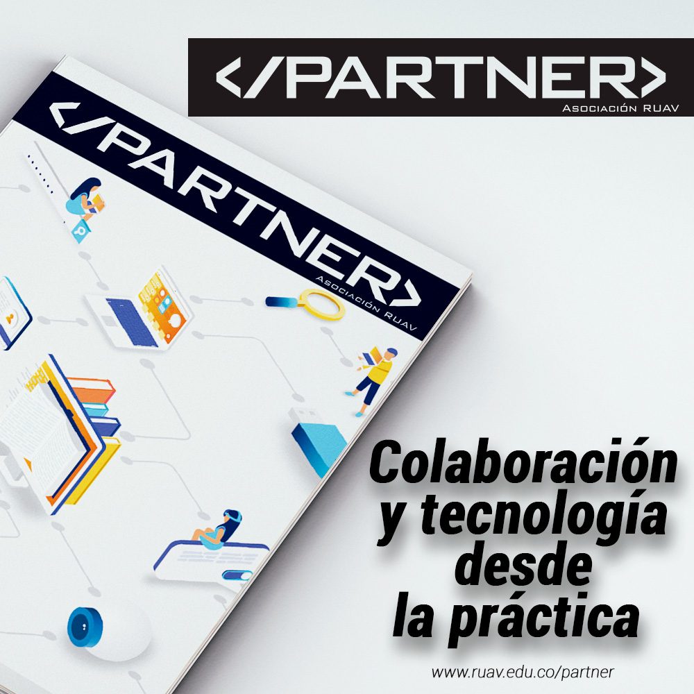 Diagramación de la Revista PARTNER de la Asociación RUAV, de circulación digital semestral. En esta revista se destacan las experiencia que han tenido los Asociados RUAV con las soluciones tecnológicas que proveen los proveedores de la institución. La revista es digital y su publicación es semestral.